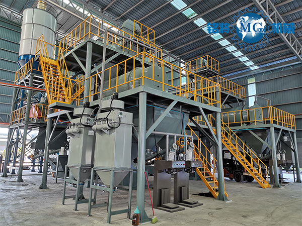 該套生產(chǎn)線在全自動(dòng)干粉砂漿生產(chǎn)線的基礎(chǔ)上,增配針對(duì)玻化微珠物理特性專門研制的離心式滾筒混合機(jī)及高效專用體積打包機(jī)(敞口包裝機(jī)可選)。該套生產(chǎn)線效率高、產(chǎn)量大、適用性強(qiáng)、操作性好。該套設(shè)備實(shí)現(xiàn)多點(diǎn)除塵處理,工作環(huán)境好,有力保障員工身心健康,創(chuàng)造高效清潔的生產(chǎn)環(huán)境。